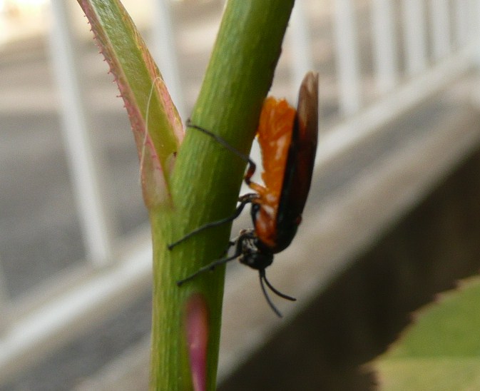すっかり暖かくなりました。バラの栽培に挑戦中のななみみです。無農薬で育てているので、毎日の見回りは欠かせません。 先日もお客様を発見,きょうも・・・・いました。
